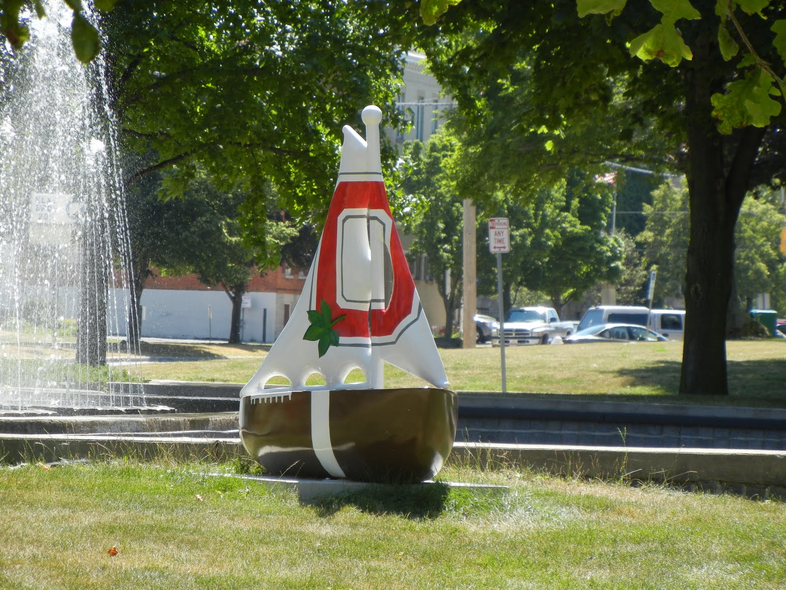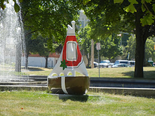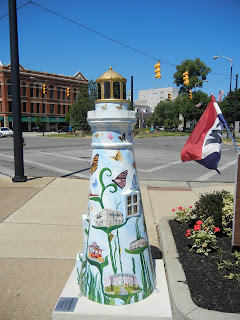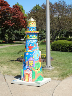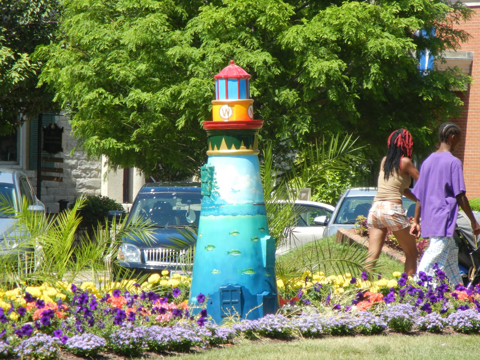 Here are some nicely painted 6 foot light-houses. They even like art in their shrubbery. |