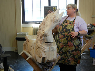 This lady works at the museum and is the carver for new animals and repairs others. |