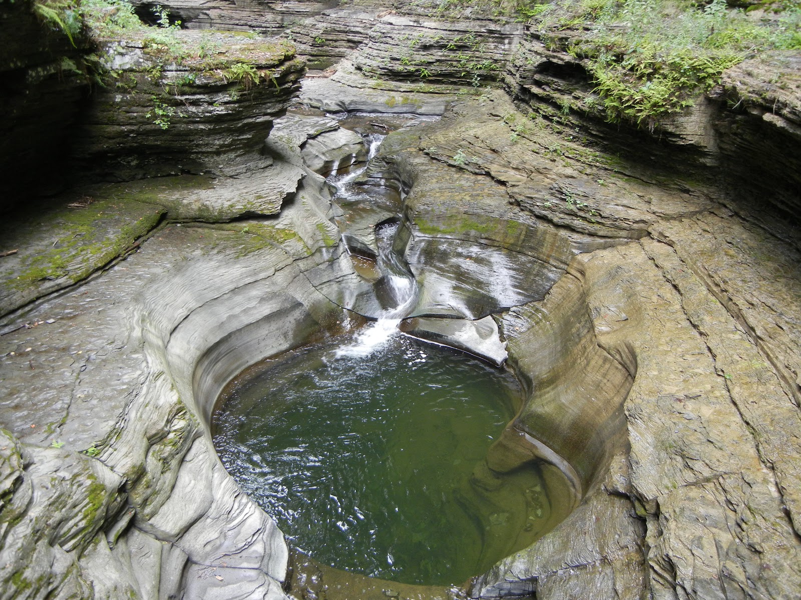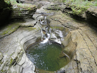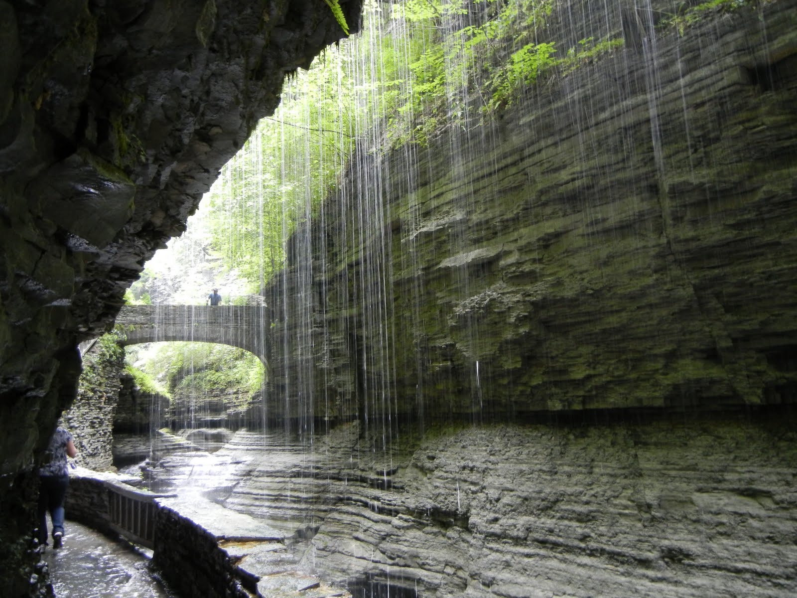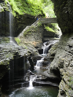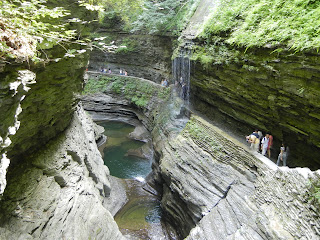 The hike up and back was 3 miles. It was beautiful and cool which is great because 1.5 miles of the hike was a climb up stairs. Watkins Glen State Park is the most famous of the Finger Lakes State Parks, with a reputation for leaving us visitors spellbound. The glen's stream descends 400 feet past 200-foot cliffs, creating 19 waterfalls along its course. The gorge path winds over and under waterfalls and through the spray of the Cavern Cascade and the rim trails overlook the gorge.